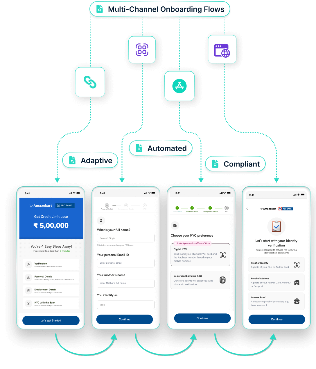 Design distinct onboarding flows to create a tailored application experience for different customer segments, product lines, source channels and locations.