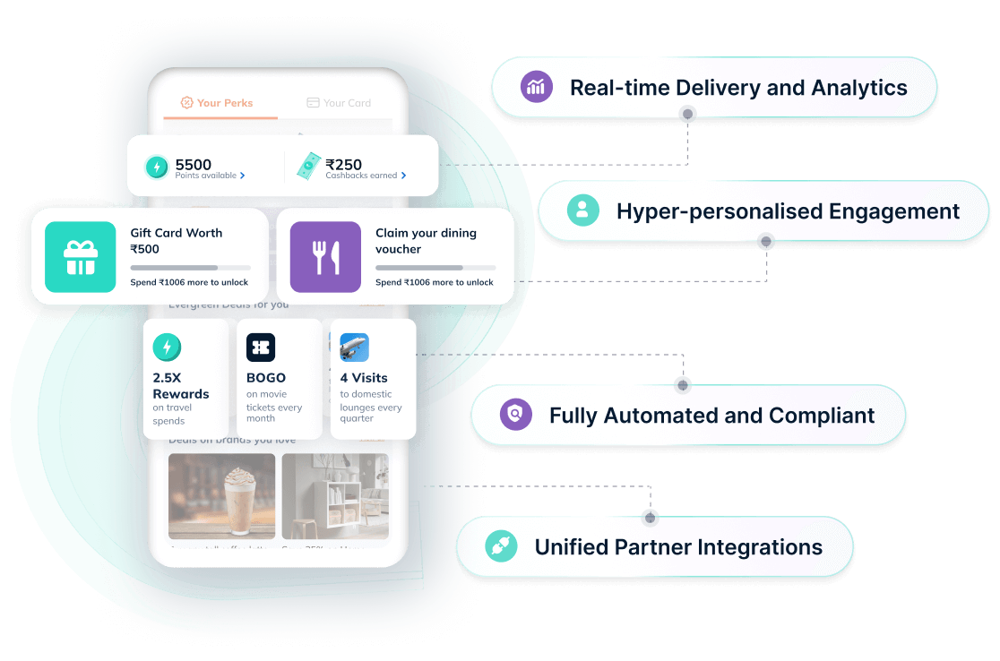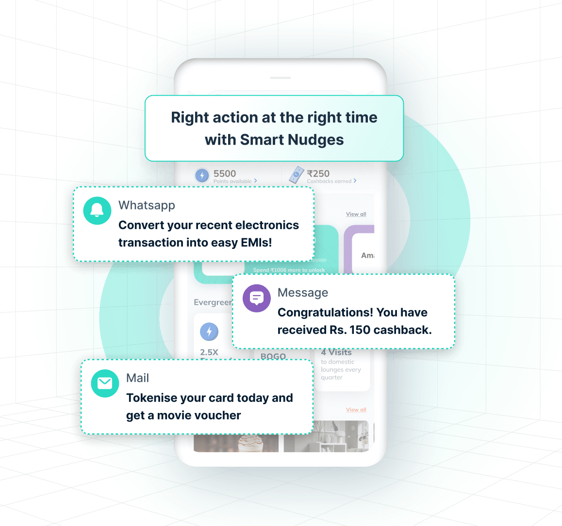 Base milestone rewards and intelligent nudges on real-time transactions.